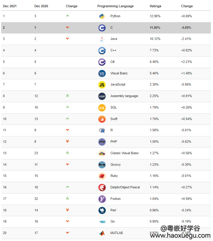 前段时间,最新的TIOBE排名出炉了。我们可以看到,前五位其实和上个月没有太大区别,依次分别是Python、C、Java教程、C++、C#。虽然C语言市场占比有所下降,但仍然稳居第二。